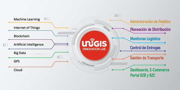 UNIGIS INNOVATION LABS funciona como un área independiente, siendo un equipo de especialistas en tecnología enfocado en iniciativas de generación de ideas y nuevas propuestas como respuesta a los desafíos recientes o futuros del área logística realizando diferentes workshops de innovación y metodología de problem solving, donde parte del input se genera de nuestros mismos clientes de la revolución digital, creando así una herramienta colaborativa en crecimiento constante de nuevas aplicaciones y funcionalidades de la solución integral TMS.