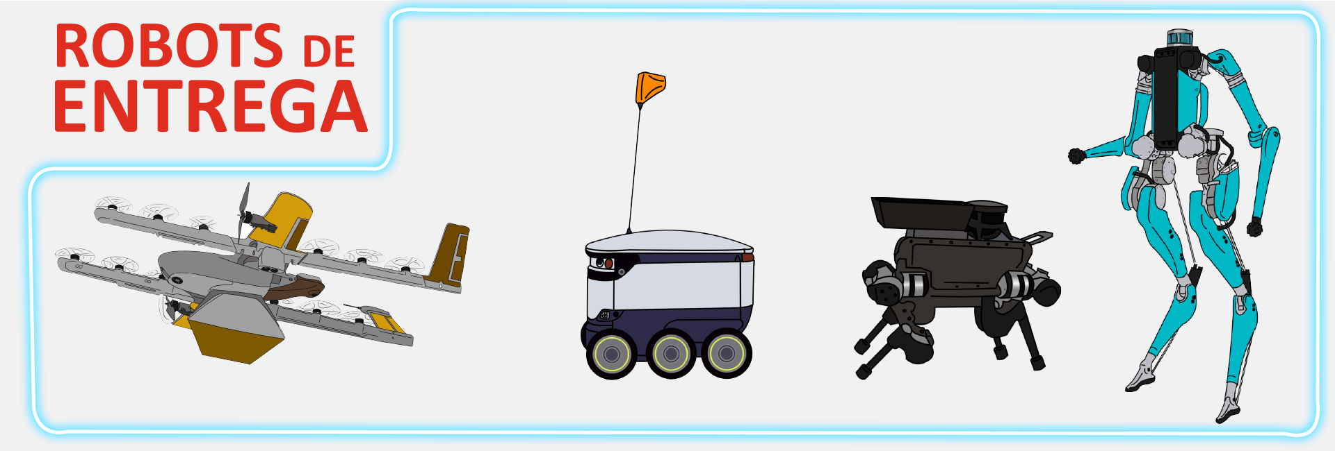 Kiwi Robot: trabaja en colaboración a otros robots de entrega a domicilio de la misma empresa, teniendo un radio de 300 m de entrega el cual cuenta con sensores de reconocimiento en caso de entregar en un domicilio o incluso en la calle. Es un robot desarrollado en Colombia y extiende sus servicios en Estados Unidos
